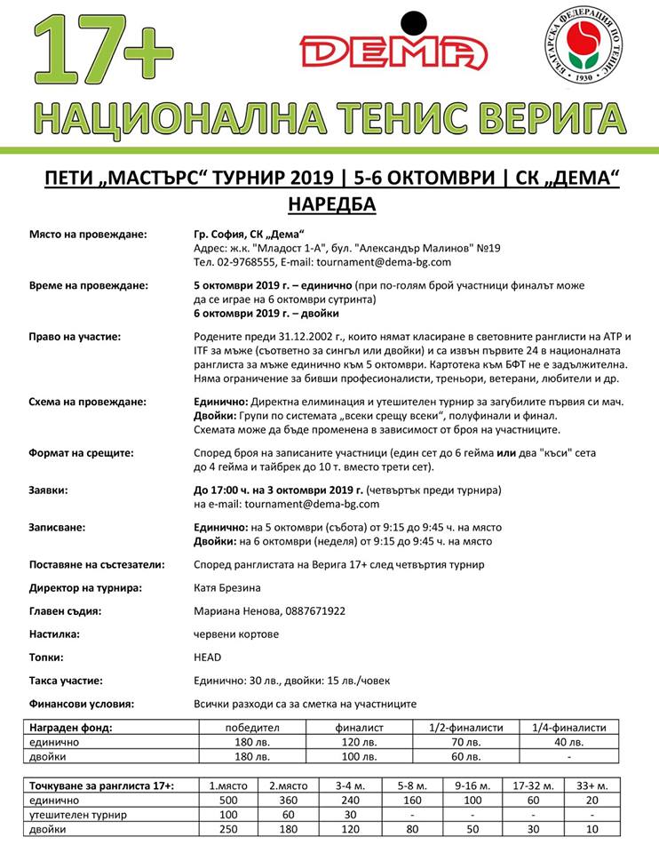 - НАРЕДБА ЗА ПЕТИЯ И ПОСЛЕДЕН МАСТЪРС ТУРНИР ОТ НАЦИОНАЛНАТА ТЕНИС ВЕРИГА 17+